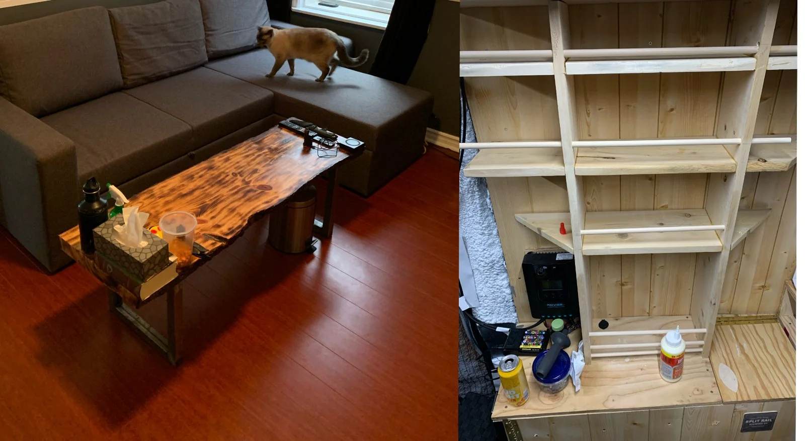 Custom carpentry from Camper builds to furniture we can turn your ideas into reality. Live edge furniture builds, odd shaped shelving we love creating one of a kind pieces for our customers!